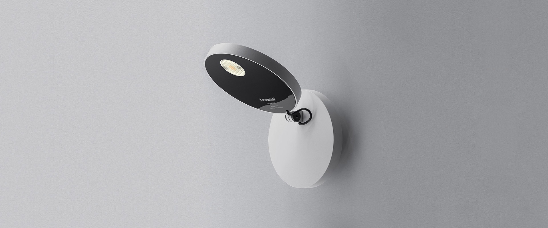 デメトラは、日本人デザイナー深沢直人の「WITHOUT THOUGHT」というアプローチから生まれました。人とモノの良い関係とは、強くモノを意識せずに自然な感じでそこに存在する、という存在の仕方を表現したデザインです。非常に軽量で、2本のアームを1本のワイヤーで保持しています。また、灯具に調光スイッチがあり、片手で光の制御ができるので、機能的で、タスクライトとしてだけではなく、プライベートスペースや光の演出もできる便利なライトです。