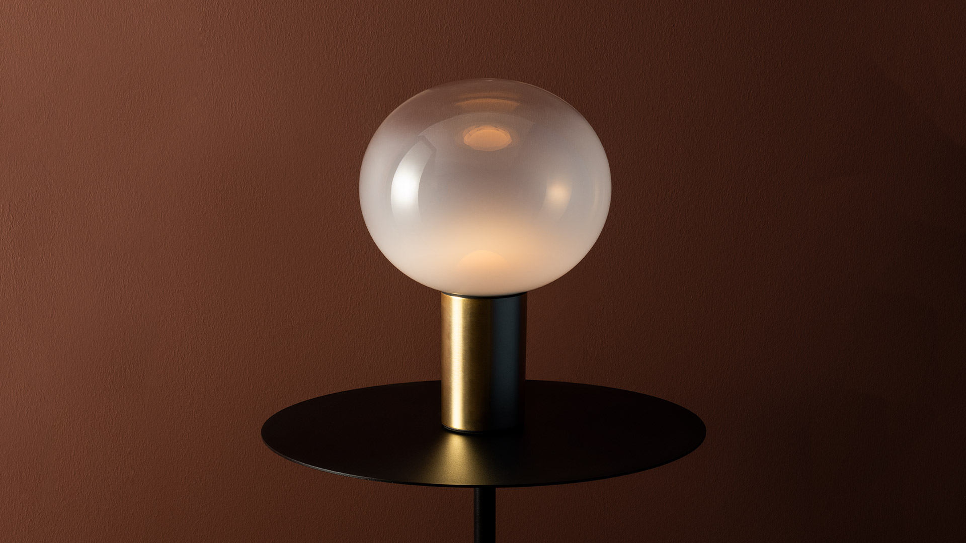 シンプルな球状のガラスシェードは、乳白からクリアの美しいグラデーションで下方は灯具を隠し光を柔らかく拡散し、上方には、直接光をを届けます。このグラデーションは、ヴェネチアンガラスの伝統的な技術です。
